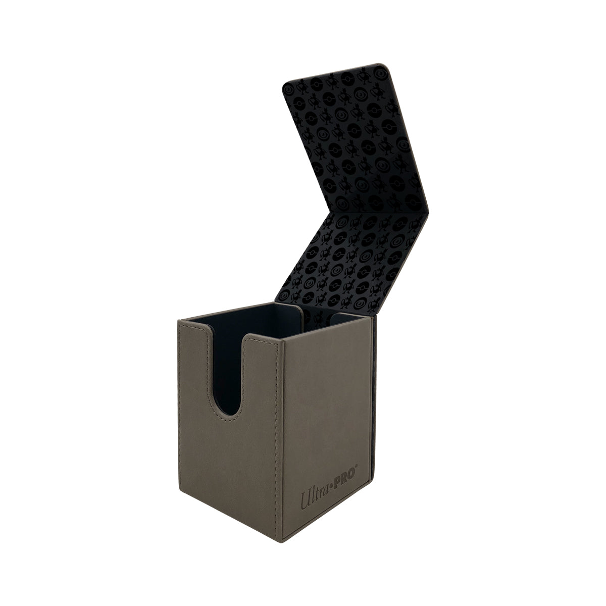 Become a legend with one of the most iconic legendary Pokémon of all time. The Mewtwo Alcove Flip Box features a debossed character outline over a purple foil silhouette on a premium leatherette material. These deck boxes hold up to 100 double-sleeved cards and the dual thumb notches make it easy to remove your cards when you are ready to battle. The flip lid is secured shut with several strong magnets, ensuring cards are protected when not in use. This is the perfect addition to any Pokémon trainer's collection!